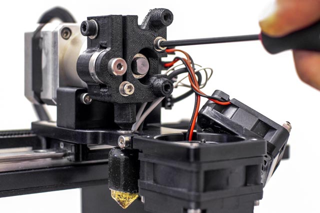 Remove the top right filament drive screw with the 2.5 mm hex wrench.